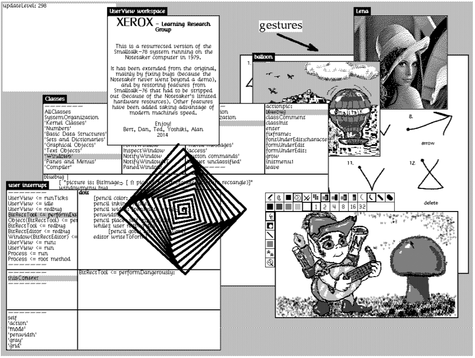 ] --- class: impact ## Lisp/Scheme Demo start --- ## Scheme ```java (define (fac n ) (if (= n 0) 1 (* n (fac (- n 1)) ))) (fac 5) ``` - [newlisp][newlisp] - [DrRacket](http://racket-lang.org/) --- ## Collatz conjecture The `Hailstone sequence` of numbers can be generated from a starting positive integer, n by: - If n = 1 then the sequence `ends`. - If n is even then `n/2 ➭ n ` - If n is odd then `(3 * n) + 1 ➭ n ` ``` 任意写出一个自然数N,并且按照以下的规律进行变换: 如果是个奇数,则下一步变成3N+1。 如果是个偶数,则下一步变成N/2。 ``` The` (unproven) Collatz conjecture` is that the hailstone sequence for any starting number always terminates. 是不是所有的正整数都符合这个规律? **尚未解决** --- ## Collatz conjecture ```scheme (define (collatz n) (if (= n 1) '(1) (cons n (collatz (if (even? n) (/ n 2) (+ 1 (* 3 n))))))) (define (collatz-length n) (let aux ((n n) (r 1)) (if (= n 1) r (aux (if (even? n) (/ n 2) (+ 1 (* 3 n))) (+ r 1))))) (define (collatz-max a b) (let aux ((i a) (j 0) (k 0)) (if (> i b) (list j k) (let ((h (collatz-length i))) (if (> h k) (aux (+ i 1) i h) (aux (+ i 1) j k)))))) ``` ``` //newlisp (print (collatz 13)) => (13 40 20 10 5 16 8 4 2 1) ``` [newlisp][newlisp] --- ## 对象式语言 - The formal programming concept of objects was introduced in the mid-1960s with `Simula 67`, a programming language designed for discrete event simulation, created by Ole-Johan Dahl and Kristen Nygaard of the Norwegian Computing Center. - `SIMULA`: The first object-oriented language. - Extremely influential as the first language with classes, objects, dynamic lookup, subtyping, and inheritance. Based on Algol 60. - `Smalltalk`: A dynamically typed object-oriented language. Many object-oriented ideas originated or were popularised by the Smalltalk group - built on Alan Kay’s idea of the Dynabook (sketch oftablet computer). http://worrydream.com/EarlyHistoryOfSmalltalk/ --- ## Basic concepts in object-oriented languages Four main language concepts for object-oriented languages: 1. Dynamic lookup. 2. Abstraction. 3. Subtyping. 4. Inheritance. --- ## Smalltalk - Extended and refined the object metaphor. - Used some ideas from SIMULA; but it was a completely new language, with new terminology and an original syntax. - Abstraction via private instance variables and public methods . - `Everything` is an object; `even a class`. - All operations are `messages` to objects. Dynamically typed. - Objects and classes were shown useful organising concepts for building an entire programming environment and system. Like Lisp, easy to build a `self-definitional` interpreter. - Very `influential`, one can regard it as an object-oriented analogue of LISP: “Smalltalk is to Simula (or Java) as Lisp is to Algol”. - Reflection, live object and IDEs,TDD,Refactor --- class: impact ## Smalltalk/pharo demo start --- ## [Smalltalk-78](https://lively-web.org/users/bert/Smalltalk-78.html)  --- ## Smalltalk Syntax on Post Card  --- ## Pharo > http://mooc.pharo.org/ --- ## Stack-based Programming - A stack-oriented programming language is one that relies on a `stack` machine model for `passing parameters`. - ` Forth, RPL, PostScript, BibTeX `style design language[1] and many assembly languages (on a much lower level). - Stack-oriented languages operate on `one or more` stacks, each of which may serve a different purpose. - Further, some stack-oriented languages operate in `postfix` or `Reverse Polish notation`, that is, any arguments or parameters for a command are stated before that command. - JVM, CLR --- ## Reverse Polish notation - postfix notation `2, 3, multiply` - Prefix notation `multiply, 2, 3 ` - Infix notation `2 multiply 3` --- ## PostScript `PostScript` “is a simple interpretive programming language ... to describe the appearance of text, graphical shapes, and sampled images on printed or displayed pages.” - dynamically typed - concatenative programming language - created at `Adobe` Systems by `John Warnock, Charles Geschke, Doug Brotz, Ed Taft and Bill Paxton` from 1982 to 1984. > display standard supported by all major printer vendors > simple, stack-based programming language > large set of built-in operators > PostScript programs are usually generated from applications, rather than hand-coded > language for driving laser printers. `Hardware interpreter` in `every` printer. --- ## The operand stack Compute the average of 40 and 60: > 40 60 add 2 div At the end, the result is left on the **`top`** of the **`operand stack`**  --- ## Procedures and Variables Define a general procedure to compute averages: `key value def` - associate key and value in current dictionary ```java /average { add 2 div } def 40 60 averag % bind the name “average” to “{ add 2 div }” ```  --- class: impact ## PostScript demo start --- ### PostScript ```java newpath % clear the current drawing path 50 50 moveto % move to (50,50) 50 100 lineto % draw a line to (50,100) 100 100 lineto 100 50 lineto 50 50 lineto 10 setlinewidth % set width for drawing stroke % draw along current path showpage % and display current page ```  [PostScript online interpreter](https://wps-sigcc.pages.dev/) [code](http://logand.com/sw/wps/) --- ## Factorial ... ```java /showFact { % n -> __ dup showInt % show n (! = ) show % ! = fact showInt % show n! } def /newline { % __ -> __ currentpoint exch pop % get current y FS 2 add sub % subtract offset LM exch moveto % move to new x y } def /Times-Roman findfont FS scalefont setfont LM 600 moveto 0 1 20 { showFact newline } for % do from 0 to 20 showpage ``` [RoPS PostScript Interpreter] (http://www.rops.org/) --- ### 逻辑式 语言 - Logic programming is a type of programming paradigm which is largely based on` formal logic`. - Any program written in a logic programming language is` a set of sentences in logical form`, expressing facts and rules about some problem domain. - Major logic programming language families include `Pr